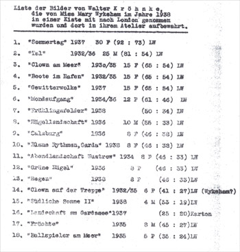 The list Walter Kröhnke prepared, when Mary Wykeham took the works with her in 1938 in a case, as it was remarked, contained four more paintings of wich there are no photographic records in colour: They are mentioned here, followed by Kröhnke´s list: